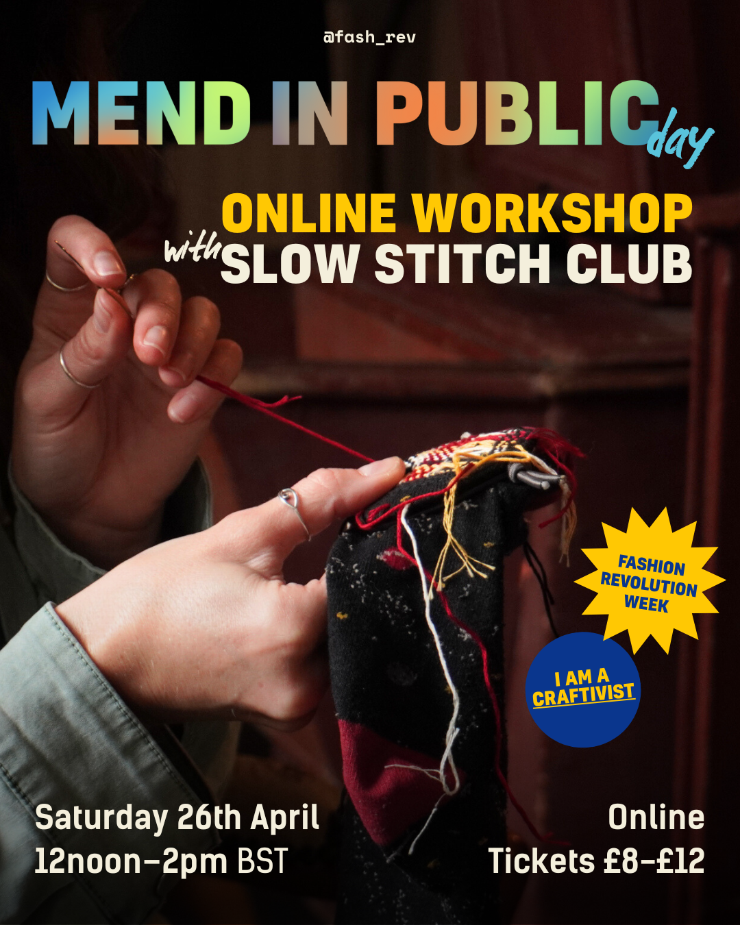 During fashion revolution week I partnered with Fashion Revolution to run an online mending workshop to coincide with their #MendInPublicDay campaign. Aimed to bring together those that were unable to attend local in person events, this online workshop looked at how to use woven darning to visibly mend clothing to repair damage and come together as a collective to raise awareness of the power of clothing repair.