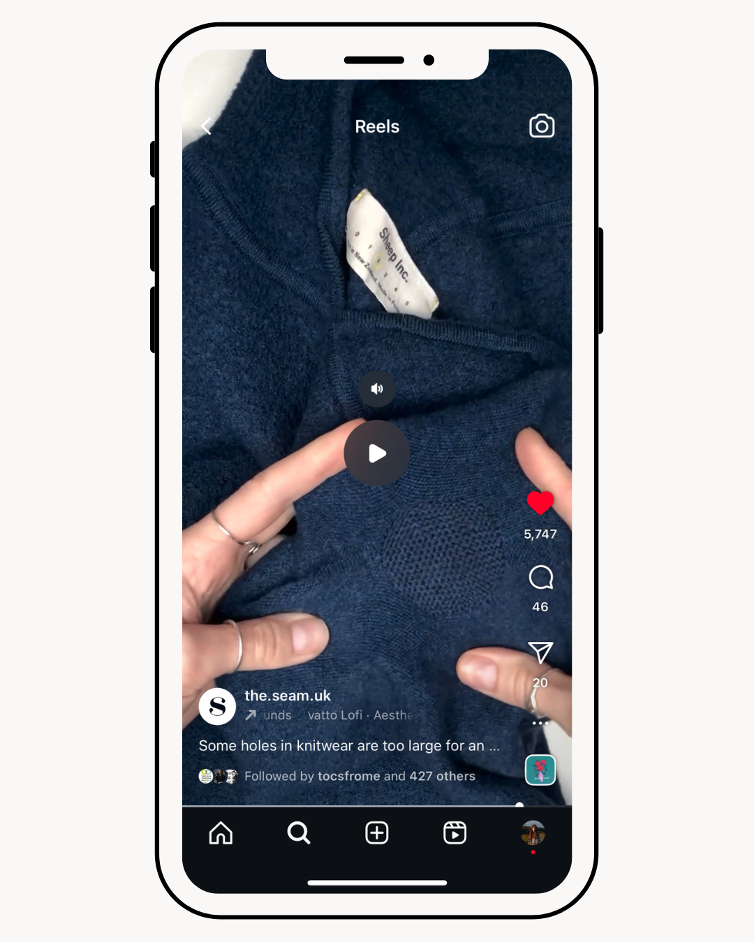 As part of a brand partnership between The Seam and Sheep Inc. I have been responsible for the repairs of over 200 Sheep Inc. garments since 2024. Working closely with both The Seam and Sheep Inc. I have helped to create long lasting relationships with customers to keep their favourite knits in rotation and have also helped to create UGC for both platforms.